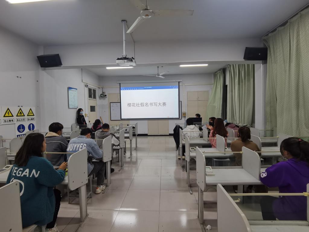 本网讯(学生通讯员/李钰枭)11月18日下午7点,樱花社于1教601教室组织开展了假名书写大赛,全体师生准时到场。