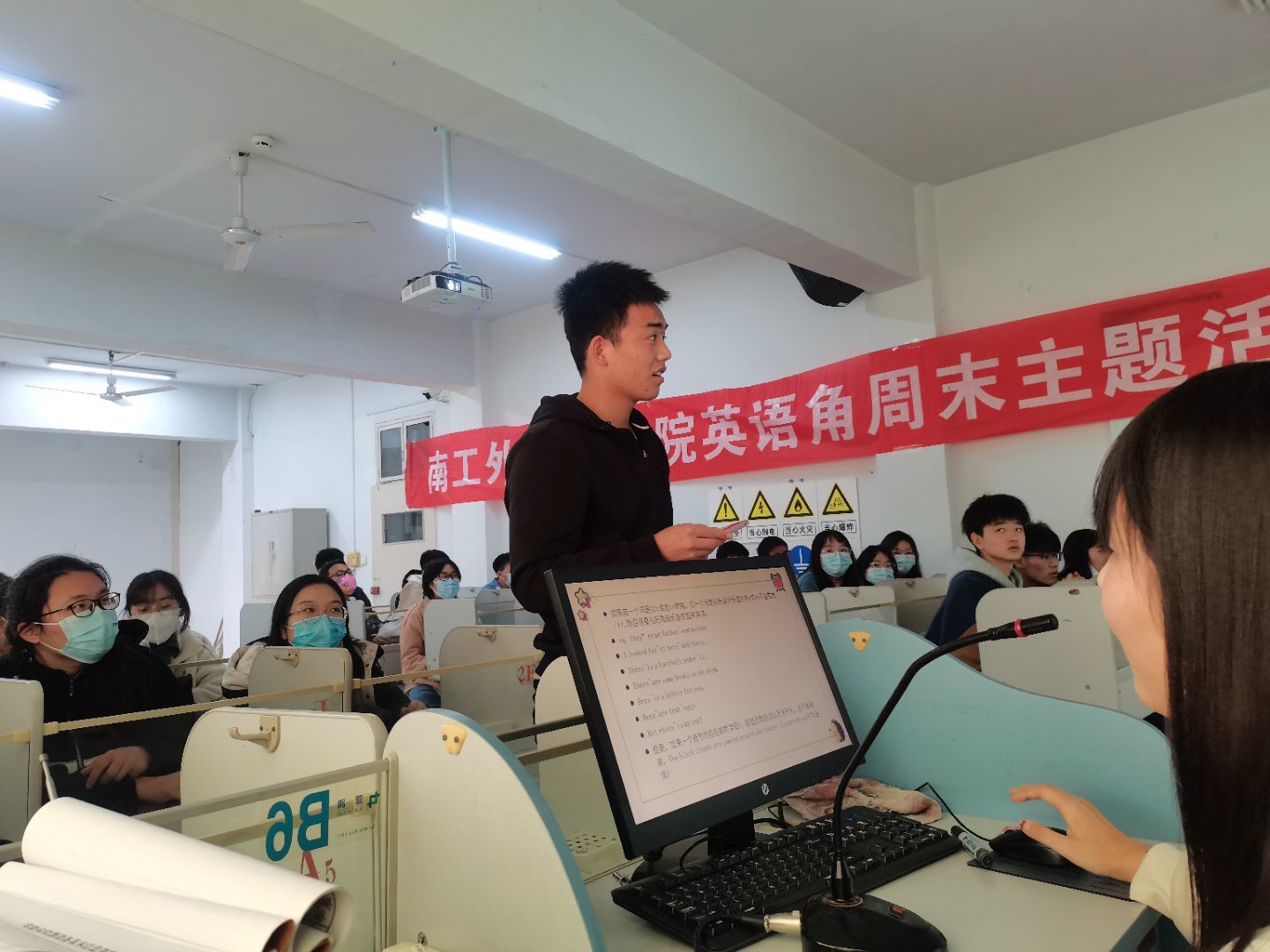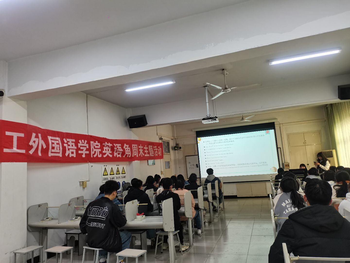 本网讯(学生通讯员/史林丰)11月28日,外国语学院英语角在1教601教室组织并展开了本学期的第一次周末活动,工作人员和全体同学准时到场,现场学习氛围浓厚。