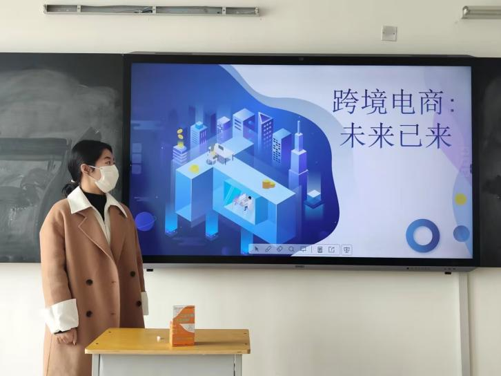 活动伊始,胡苗苗对跨境电商形成的背景、原因和跨境电商的类型进行详细介绍,进一步分析当今新冠肺炎疫情形势下高速发展的电子商务对社会带来的影响,引出作为语言类专业的学生所面对的机遇和挑战。讲解过程中,同学们专心致志,对以跨境电商知识为前提的行业状况有了更全面的认识。最后,胡苗苗通过视频,向大家展示了当前的国际局势,深层次、全方面说明跨境电商是未来重要发展趋势。胡苗苗提出,当前形势下我们需要提高专业素质和文化素养,全方位了解学习相关知识,更好地适应时代的发展。