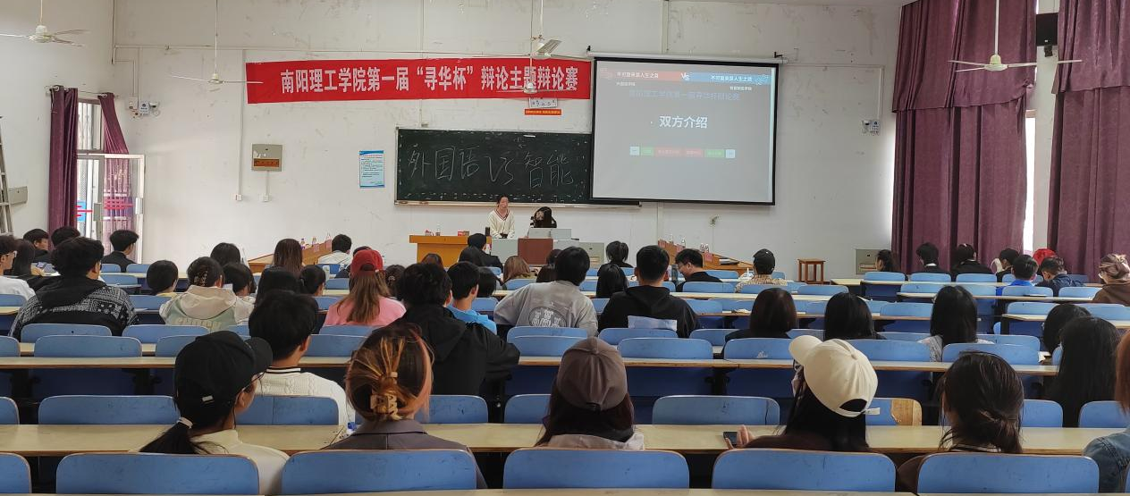 本网讯(通讯员/齐艺然)4月8日,外国语学院辩论社于6号教学楼101教室参加第一届“寻华杯”辩论赛四强赛。参赛选手、工作人员以及观众准时到场。