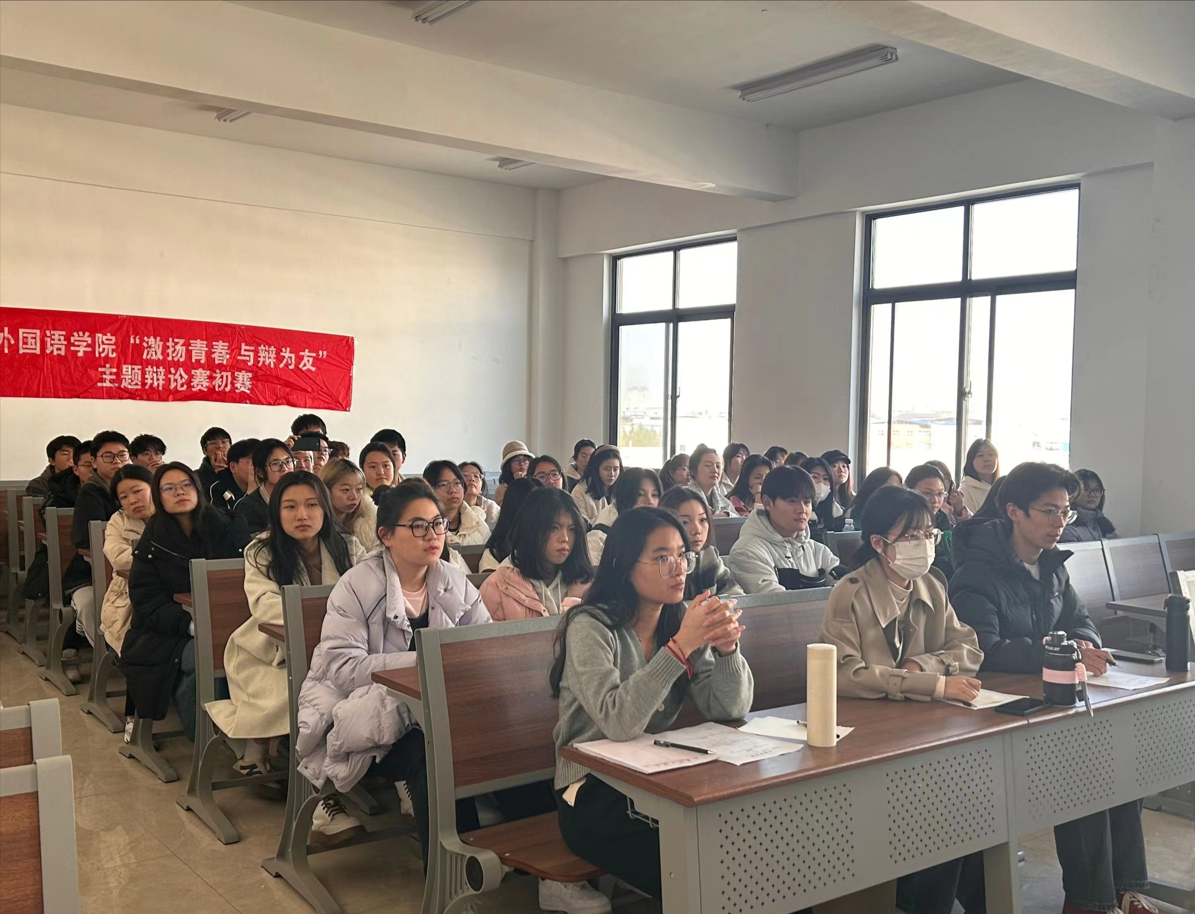 本网讯(通讯员/赵奕晴)为丰富学生校园文化生活,培养学生思辨能力和语言表达能力,加强校园文化建设,11月18日,外国语学院于19号教学楼501室举办以“激扬青春,与辩为友”为主题的辩论赛初赛,参赛选手、工作人员以及观众准时到场。