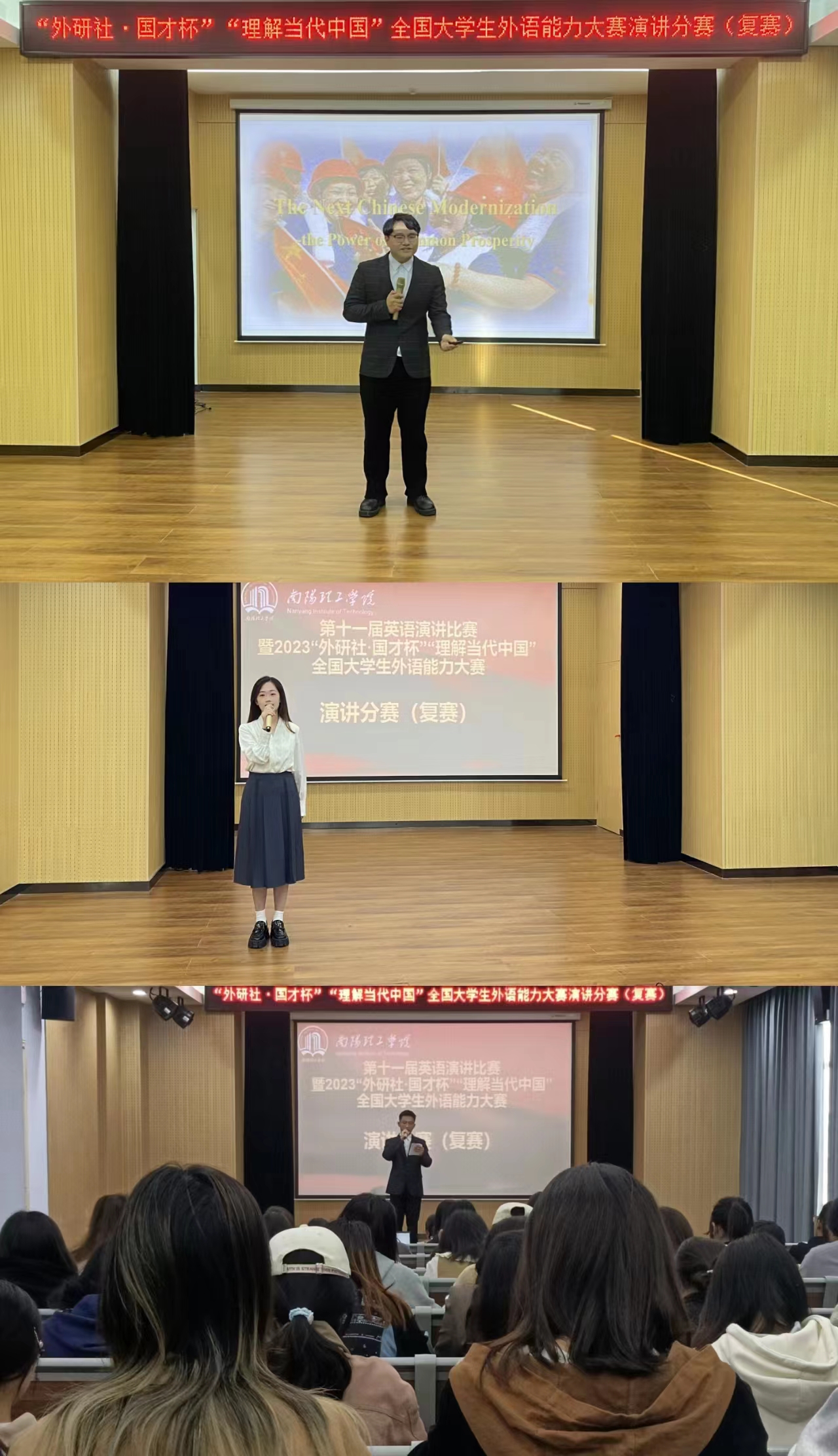 本网讯(通讯员/肖婧宜)为提升同学们的沟通能力和思辨能力,培养国际化人才,增强学生的跨文化交际意识,10月13日,南阳理工学院于19号楼105室顺利举办2023“外研社·国才杯”“理解当代中国”全国大学生外语能力大赛演讲分赛(复赛),本次比赛由南阳理工学院学生处主办,外国语学院承办,南阳理工学院全体学生积极参加。