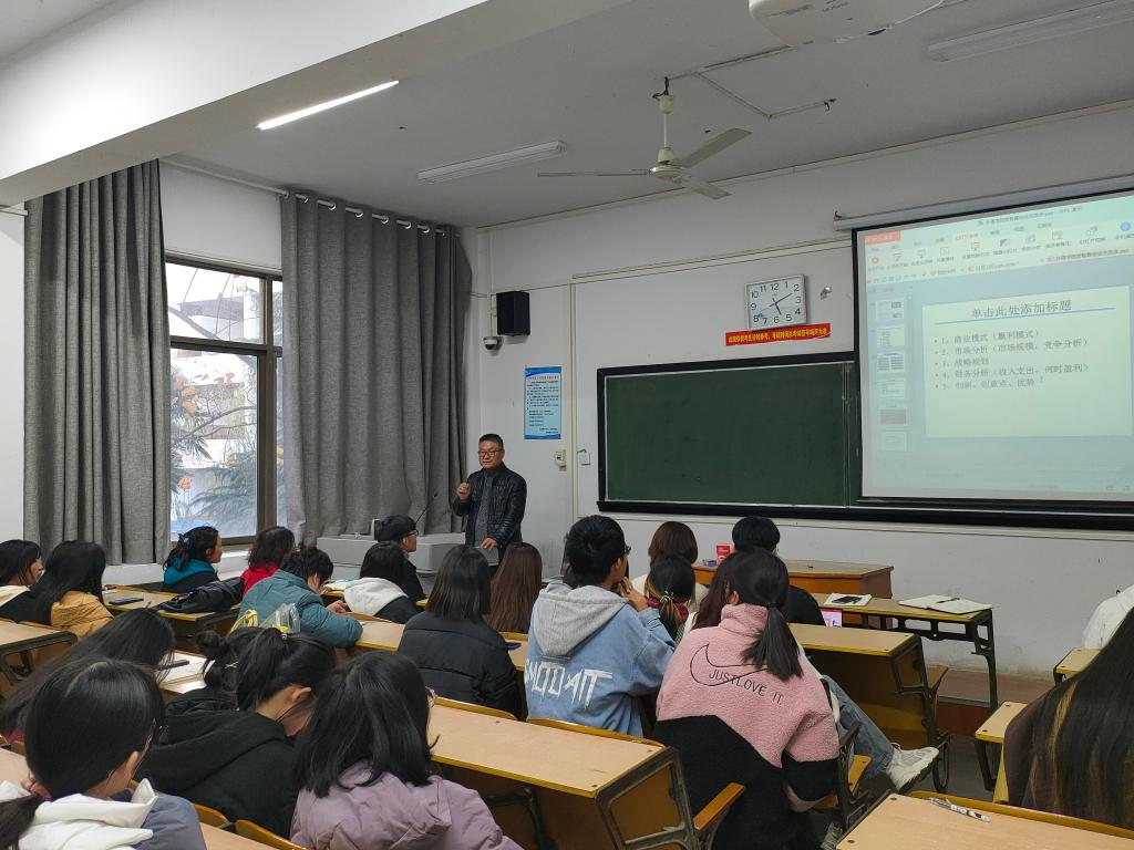 本网讯(学生记者/朱勇财)为落实国家双创工作部署,做好“挑战杯”创业计划竞赛的培育打磨工作,指导学生了解创业知识及参加创业竞赛的注意事项和技巧,提升学生参赛水平和项目竞争力,结合学校《关于组织开展南阳理工学院第八届“挑战杯”大学生创业计划竞赛的通知》要求,11月23日下午,外国语学院于1号教学楼210教室举办2021年南阳理工学院第八届“挑战杯”大学生创业计划竞赛培训会。本次培训由学院领导牵头,创新创业就业指导中心组织,特邀范蠡商学院副教授、创新创业竞赛优秀指导老师樊智勇为主讲人,学院部分学业导师、参赛团队成员及对竞赛感兴趣的师生参加。