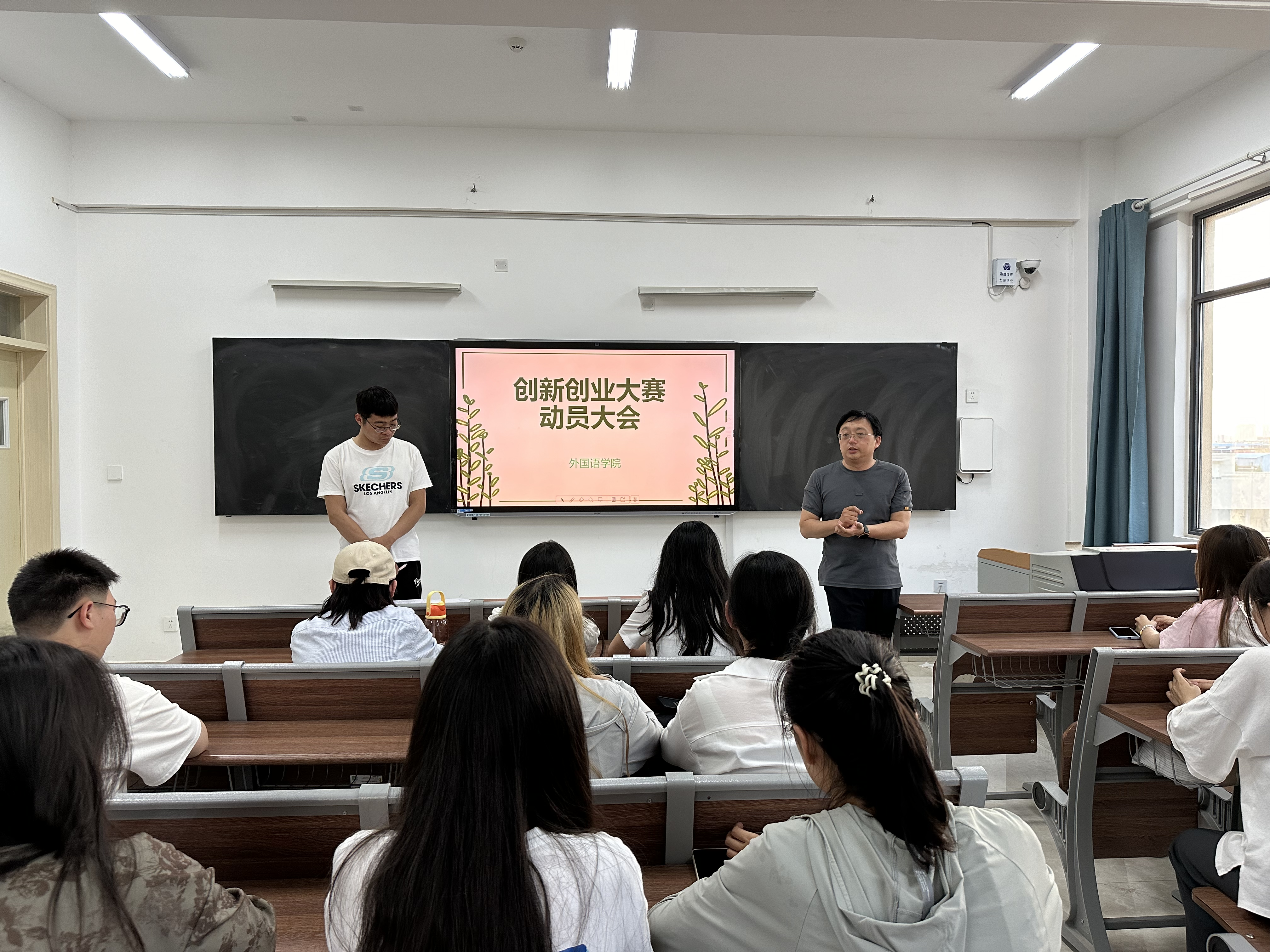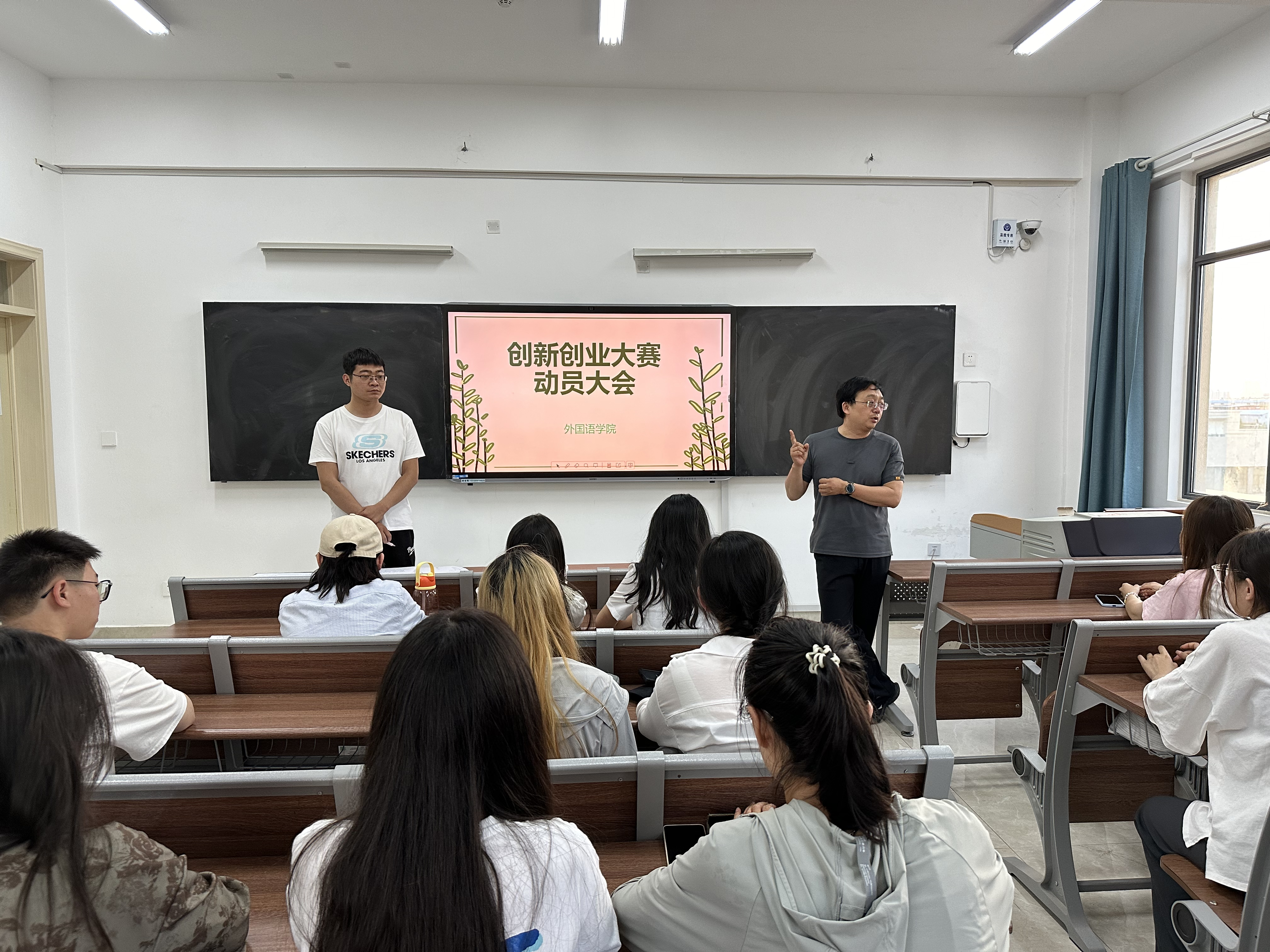 本网讯(通讯员/金韫仪)为了激发学生的创新创业热情,提高外国语学院的整体创新创业实力,5月20日,外国语学院于19号教学楼513室召开创新创业大赛动员大会,本次会议由就业专干李鹏飞主持,外国语学院副书记李爽正主讲。
