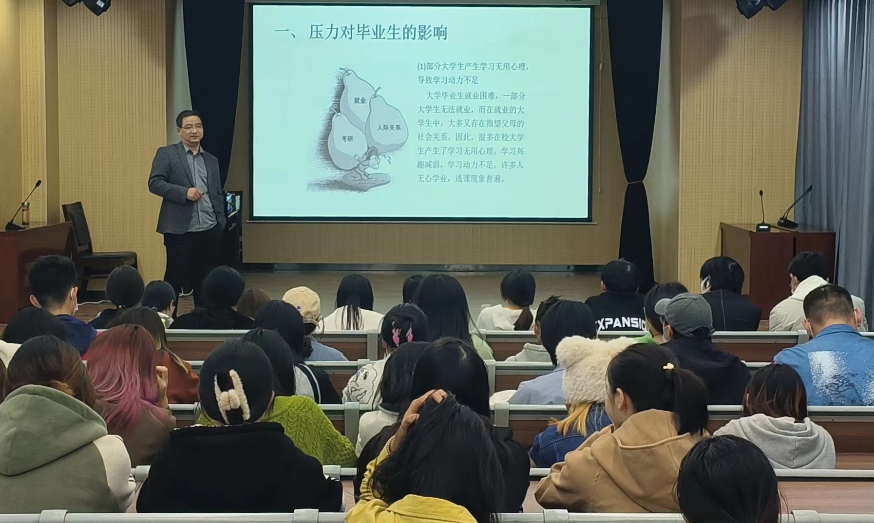讲座伊始,张亚楠对毕业生就业问题进行详细分析,指出可以通过自我反省、注意力转移、自我激励、放松训练等方法来缓解就业压力。随后,张亚楠针对就业压力带来的影响,围绕就业压力的管理策略进行详细讲解。最后,张亚楠对此次讲座进行总结,并为毕业生提出两条建议:一、做好心理准备,调整择业心态,树立不怕挫折、敢于吃苦的心理。二、做好求职材料的准备,提供有说服力和吸引力的书面资料。张亚楠表示希望每一个学生都能实现高质量就业,拥有属于自己的未来。