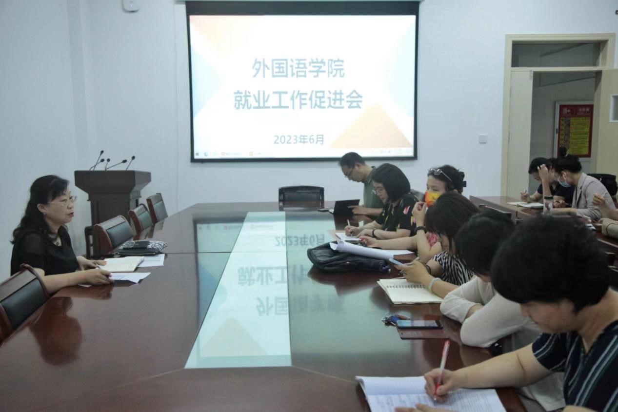 本网讯(通讯员/张凉彦)为进一步落实上级关于做好高校毕业生就业工作的决策部署,分析形势,总结经验,全力做好2023届高校毕业生就业工作,6月16日,外国语学院于19号教学楼开展就业工作促进会,外国语学院党委书记赵万哲主持本次会议,各就业指导教师积极参会。
