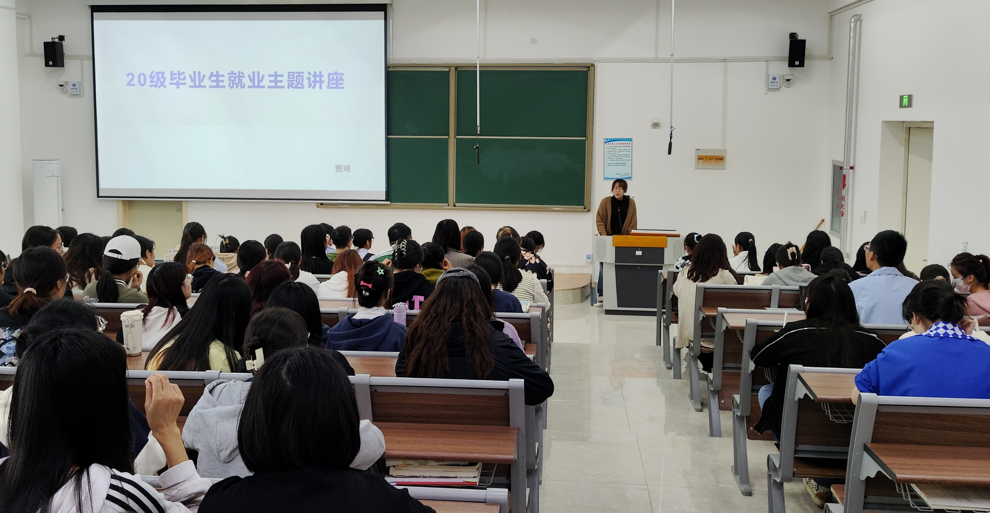 本网讯(通讯员/周迪)为强化学生职业价值引领,促进应届毕业生高质量就业,10月8日,外国语学院于23号教学楼102室开展就业指导讲座。本次讲座由2020级辅导员贾琦主讲,2020级全体同学积极参加。