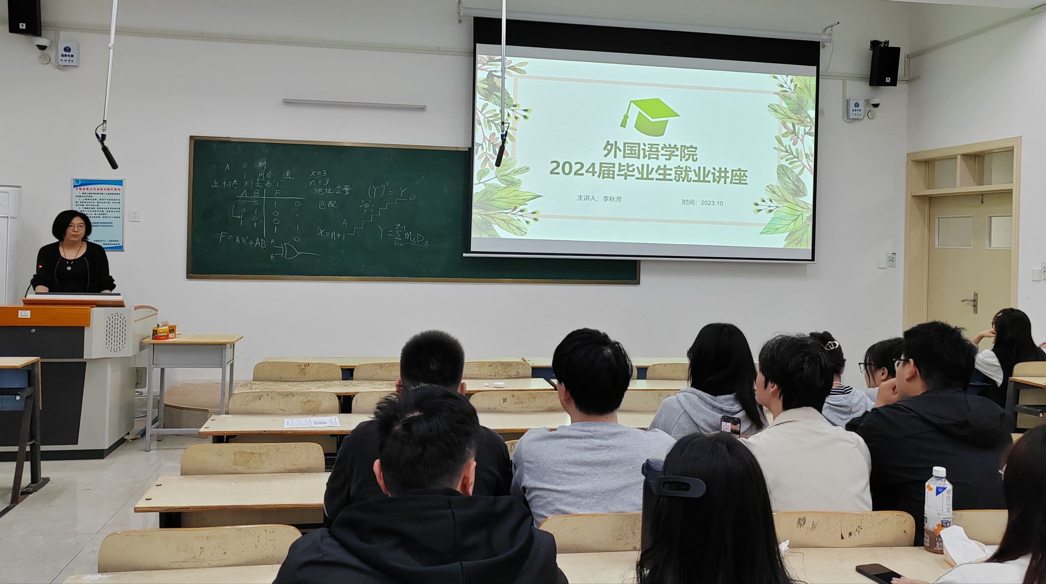 本网讯(通讯员/周迪)为加强应届毕业生对工作就业的认识,帮助学生了解社会就业发展趋势,合理规划未来个人发展,10月12日,外国语学院于23号教学楼206室顺利举行2024届毕业生就业讲座,本次讲座由外国语学院副院长李秋芳主讲,2020级全体学生积极参加。