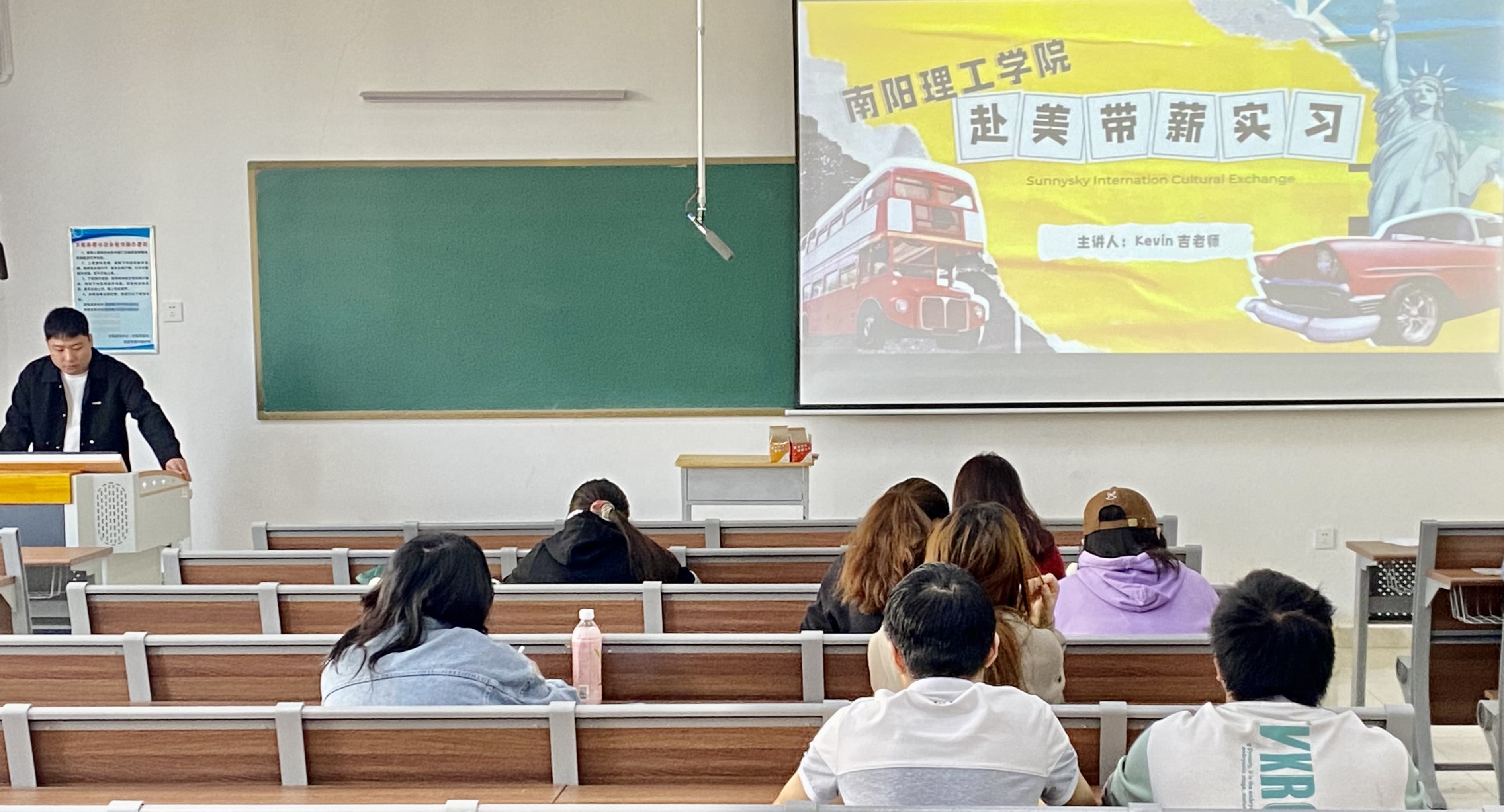宣讲会伊始,吉老师通过短片向在场同学展示毕业生在美国实习的经历和收获,吸引了同学们的兴趣。随后,吉老师从多方面阐释此次实习经验能为同学们带来的提升,强调实习经历对于学生将来就业竞争力的重要性,并就薪资待遇、工作内容、岗位招聘条件和注意事项进行具体介绍。接下来,吉老师向学生们展示了工作环境和公司团建活动,帮助学生们更好了解企业文化。最后,吉老师鼓励有意向的学生们积极报名参加,抓住此次宝贵的机会,实现个人职业发展的目标。