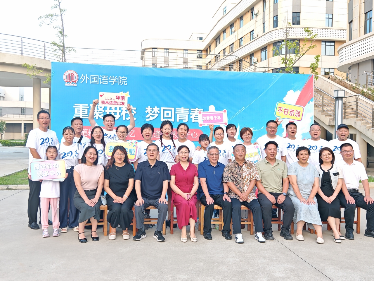 本网讯(通讯员/甄佳)7月26日,外国语学院2005届商务英语专业30余名校友携亲属从各地回到母校,参加毕业20周年聚会活动。党委书记李新宁、院长赵万哲、副院长李秋芳、校友专干及教师代表出席此次活动。