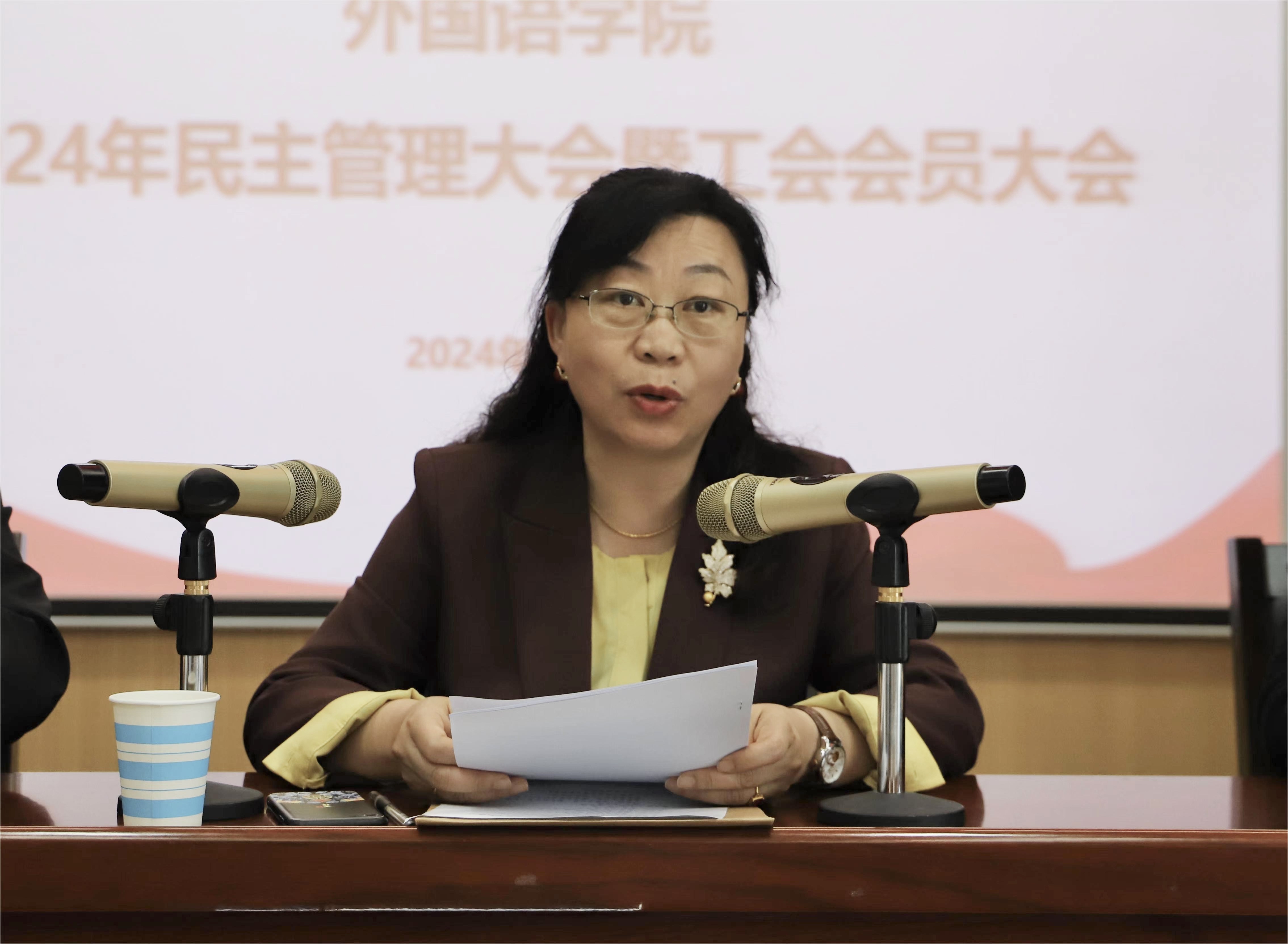 本网讯(通讯员/冯乙朗)4月9日,外国语学院召开2024年民主管理大会暨工会会员大会,会议由外国语学院党委副书记李爽正主持,领导班子和全体教职工出席会议。