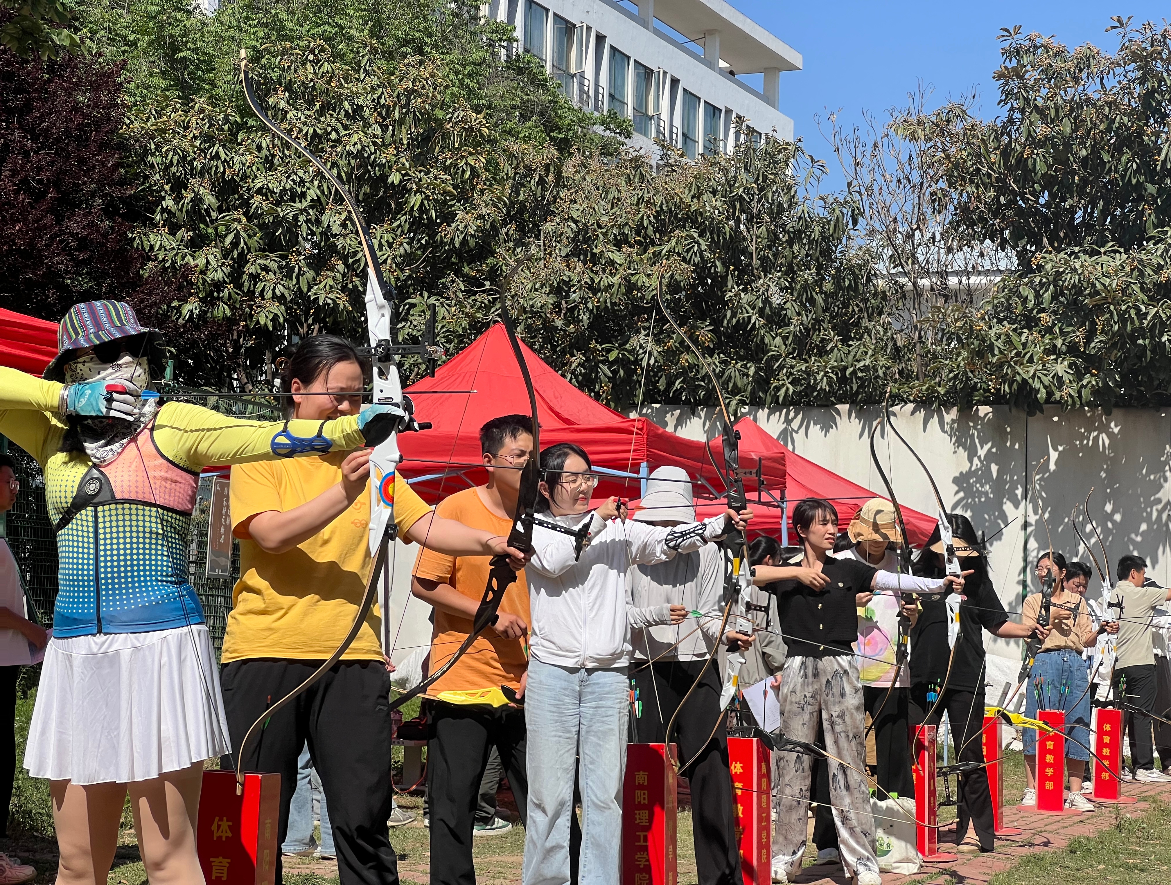 本网讯(通讯员/郭怡朵)为丰富校园体育文化,激发教职工运动热情,2025年5月11日,南阳理工学院第三届射箭锦标赛教职工组开赛。外国语学院分工会积极响应,认真组织教职工踊跃备赛参赛,并在赛场上尽显外院风采。