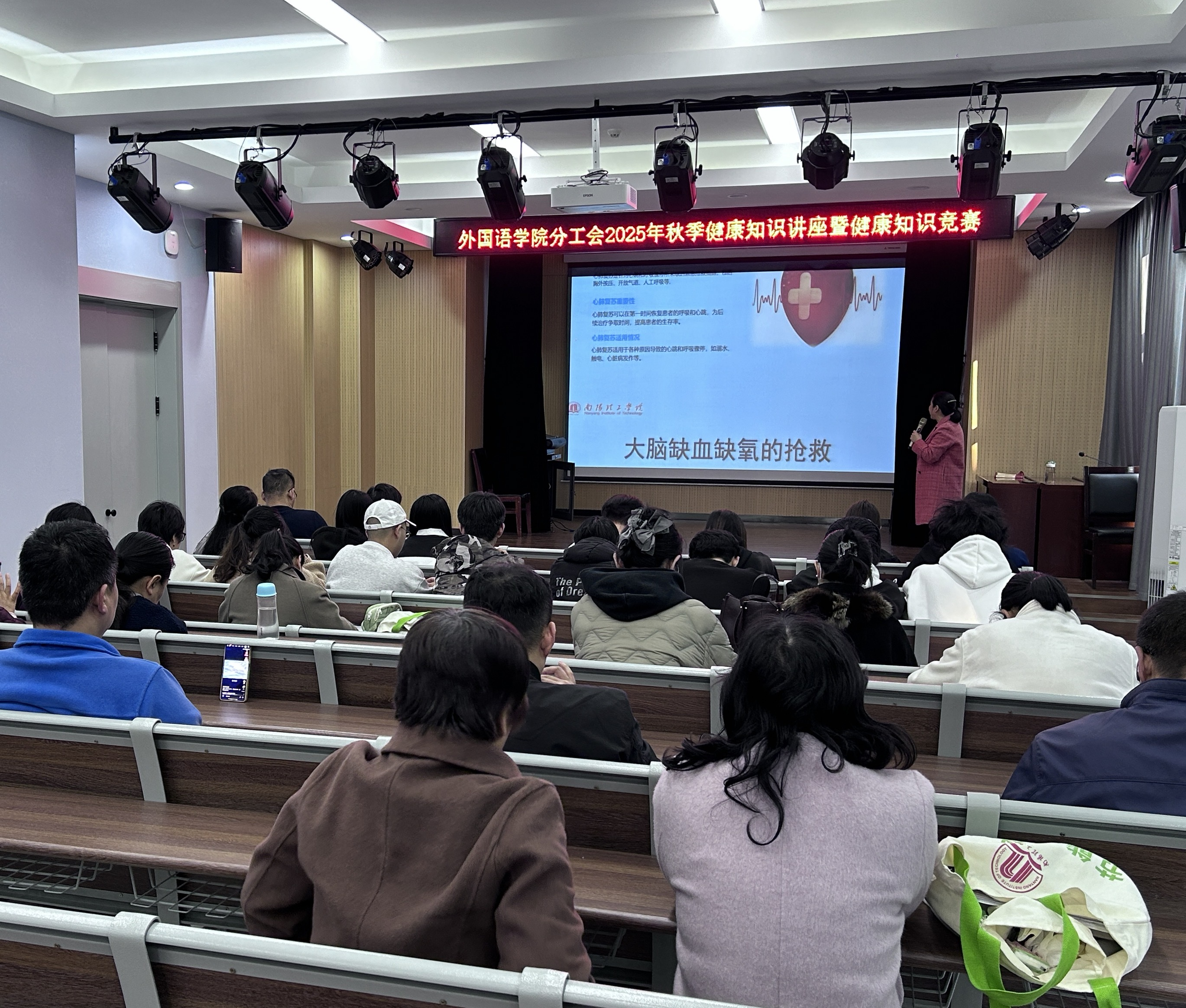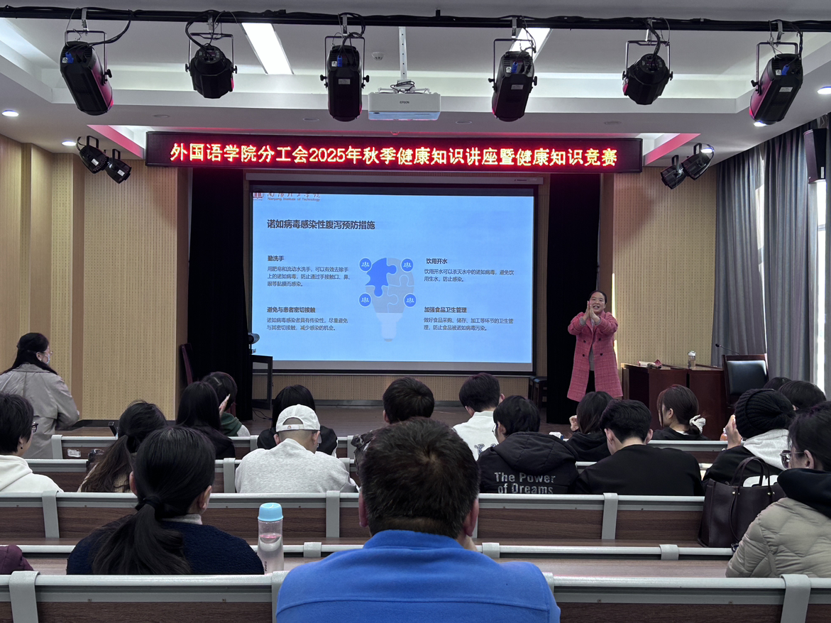 本网讯(通讯员/甄佳)2025年11月4日,南阳理工学院外国语学院分工会在19教105教室成功举办秋季健康知识讲座暨健康知识竞赛活动,学院师生共同参与,在学习实用健康技能的同时,深化了健康防护意识。