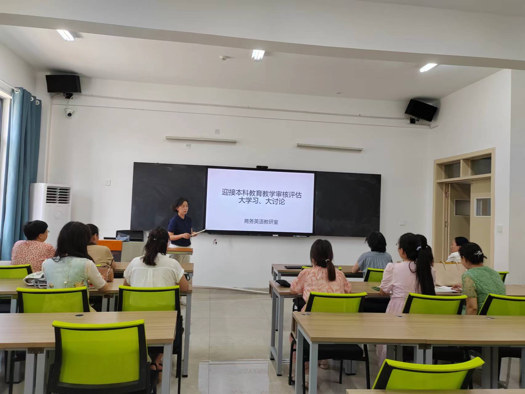 本网讯(通讯员/王子瑞)为迎接本科教育教学审核评估,全面普及评估知识,准确把握评估要求,商务英语专业全体教师于2024年5月29日在19303教室开展迎接本科教育教学审核评估大学习、大讨论。会议由商务英语专业教研室主任解靓主持。