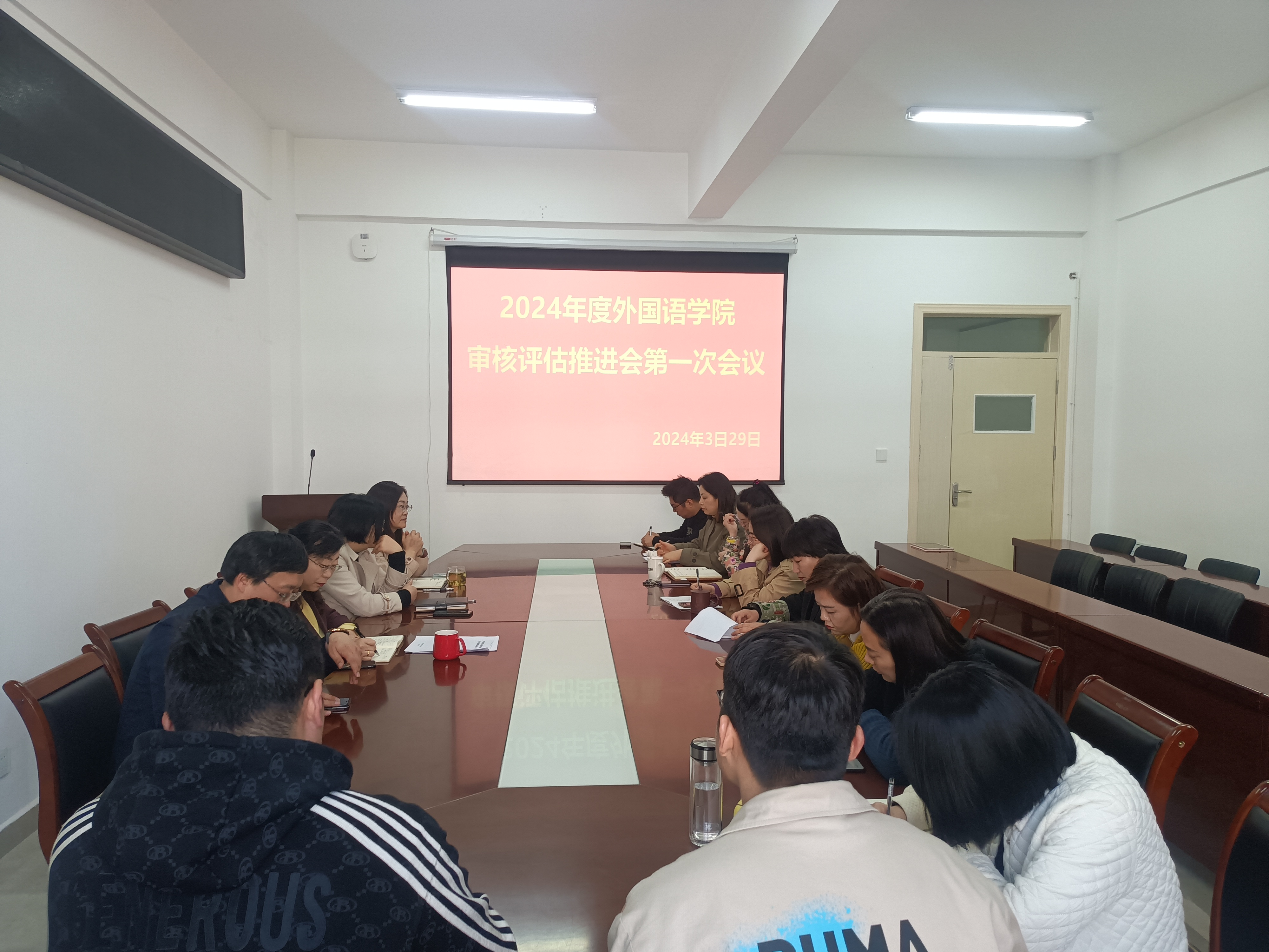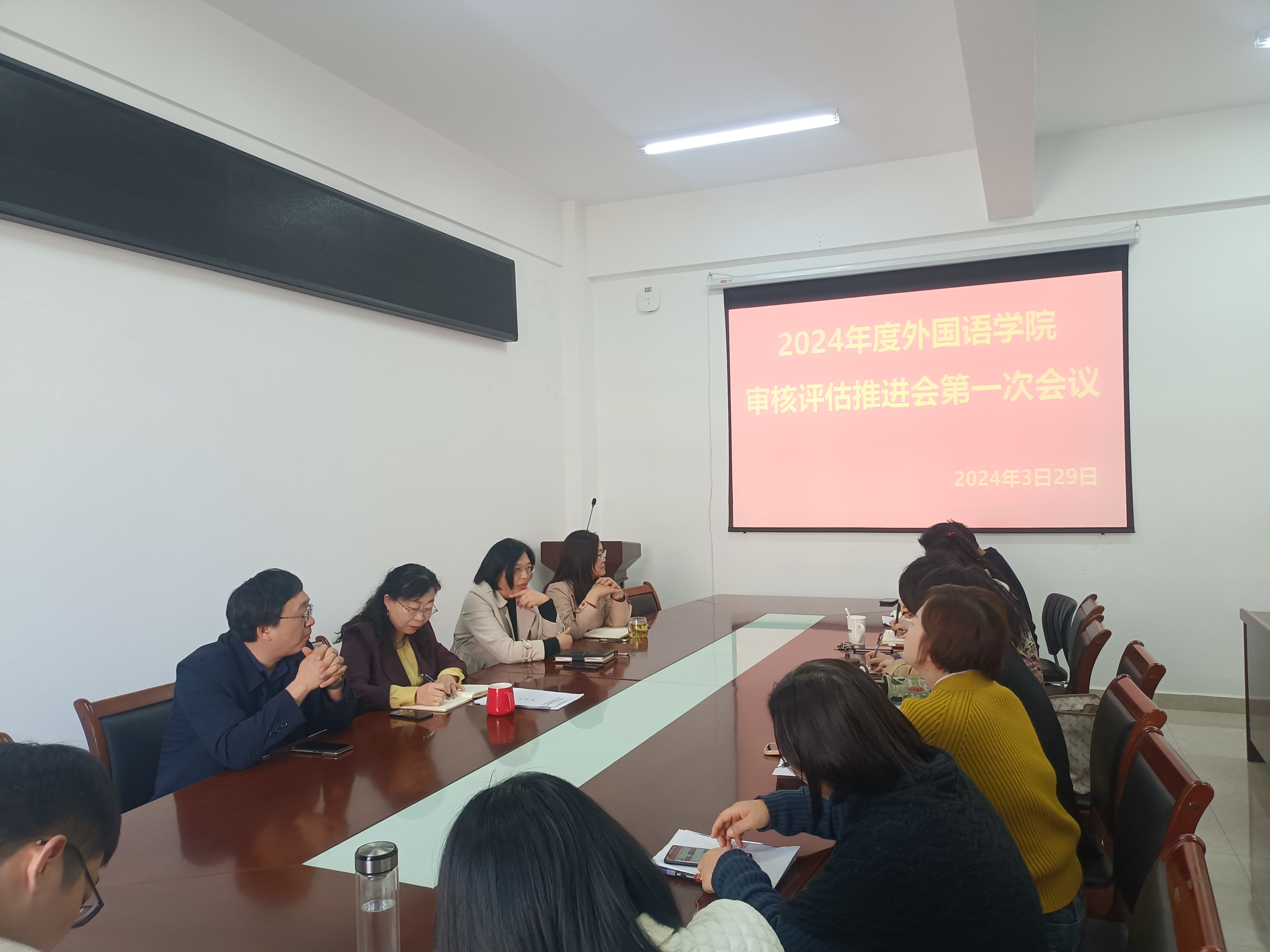 本网讯(特约记者 崔俊阁)外国语学院于2024年3月29日在19-201会议室召开了2024年度审核评估推进会第一次会议。本次会议由学院领导班子、党政办、教务办、团学办、教研室等主要负责同志参加。